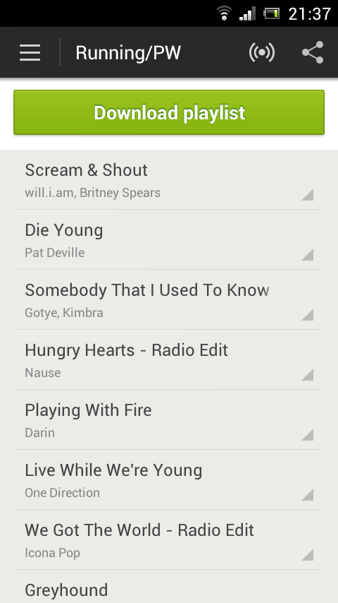 Känner mig sjukt nöjd 🙂 Trodde själv aldrig att det skulle hända under min livstid. Har ju dock fått ihop en, enligt mig, jättebra musiklista på Spotify. Och det gör ju jättemycket. Blir så taggad av mina låtar. Här syns några av dom 🙂