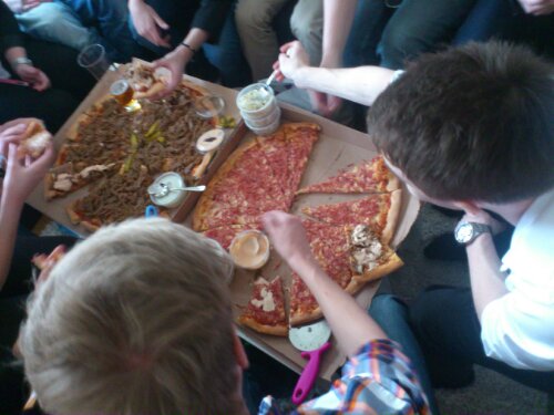 Så nu har det precis serverats kaffe och kladdkaka och jag blev bjuden på en shot med galliano och kaffe. Så gott! Dom dricker med stil ungdomarna 😉 (Det första som hände när första gästerna kom så blev jag bjuden på vin av sonens kusin.) En stund innan det bjöds det på familjepizza på enklaste möjliga sätt. Nämligen slicead direkt ur kartongen.