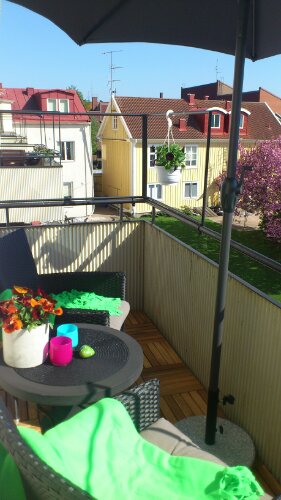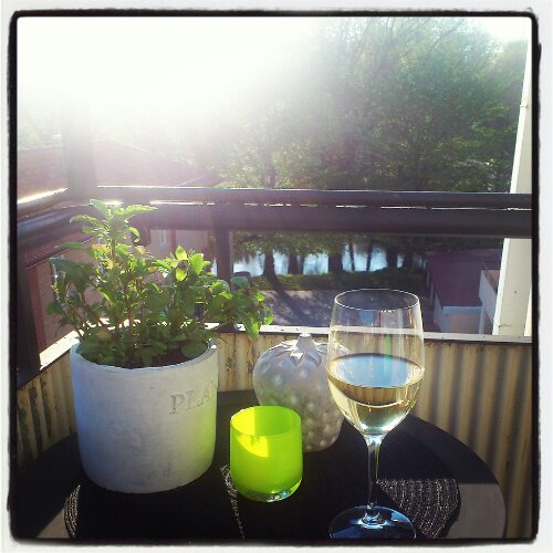 Sitter just nu i kvällssolen med ett glas vitt på min balkong som börjar bli riktigt fin. Känns som om jag kommer att tillbringa många goa sommarkvällar här. Jag trivs verkligen här ute. Har faktiskt en ganska vacker utsikt också. Fastän jag bor i princip mitt i stan.