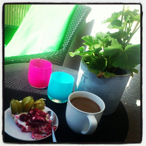 Kan tala om att Dottern blev nöjd och glad över sina presenter och kalaset så då är jag också glad och nöjd. När alla gäster gått satte jag mig ner på balkongen en stund och tog en mugg kaffe och lite tårta i lugn och ro. Så skönt att vila lite, för hur kul det än är så är det lite bestyr med att hålla kalas. Och jag som en gång varit i den berömda väggen känner ibland av min kropp vid sådana här tillställningar. Tog mig för övrigt fem år att komma tillbaka fullt från min sjukskrivning.