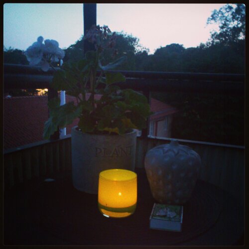 Är faktiskt första kvällen som jag tänder mina ljuslyktor på balkongen. Och nu sitter jag här och bara njuter och tar in ljud, dofter, synintryck och känslor som finns i natten.