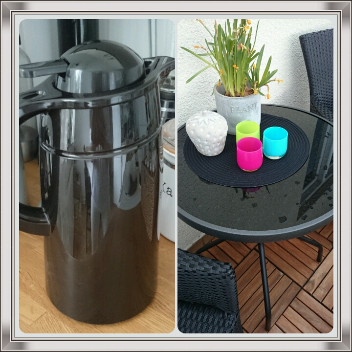 Först ut kommer det fina balkongbordet som jag fick av mina förĂ€ldrar nĂ€r de hjĂ€lpte min att ”vĂ„ra” min balkong hĂ€romdagen. Blev vĂ€ldigt nöjd med det och jag tror inte att det blĂ„ser ivĂ€g i första taget. SĂ„ igĂ„r pĂ„ kalaset fick jag en termos. Ringde nĂ€mligen och bad att jag skulle fĂ„ lĂ„na en av Mamma under kalaset men de hade redan kört hemifrĂ„n. SĂ„ nĂ€r de kom hade de varit inom affĂ€ren och köpte mig en i present. SĂ„ gulligt!