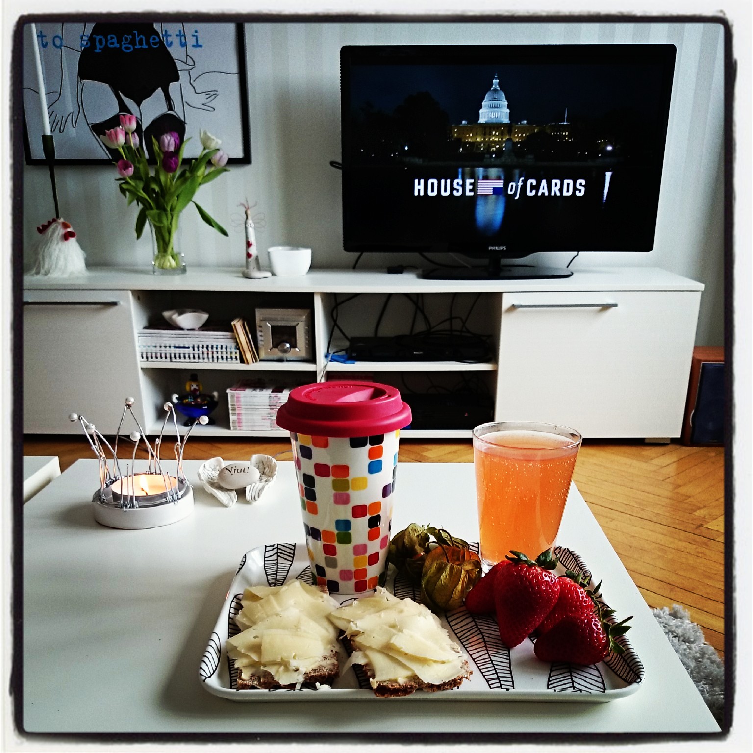 De tvĂ„ första Ă€r egentligen mer som tights och de kostade 70:- paret och det tredje Ă€r ett par jeans och kostade 90:-. Priser helt i min smak. Sedan blev det en present till faktiskt. Alla pĂ„ kalaset igĂ„r var sĂ„ lyriska över Netflix sĂ„ jag startade ett abonnemang dĂ€r. Första mĂ„naden Ă€r gratis att prova pĂ„, sĂ„ det tĂ€nker jag göra nu. Blev tipsad om en serie som heter ”House of Cards” sĂ„ den kollade jag in ett avsnitt av igĂ„r kvĂ€ll… SĂ„ hĂ€r sĂ„g min frukost ut idag pĂ„ morgonen…
