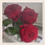 Paket fick jag också! Dagen innan när min Vän kom till mig fick jag tre röda och helt underbara rosor. Blev alldeles varm i hjärtat!
