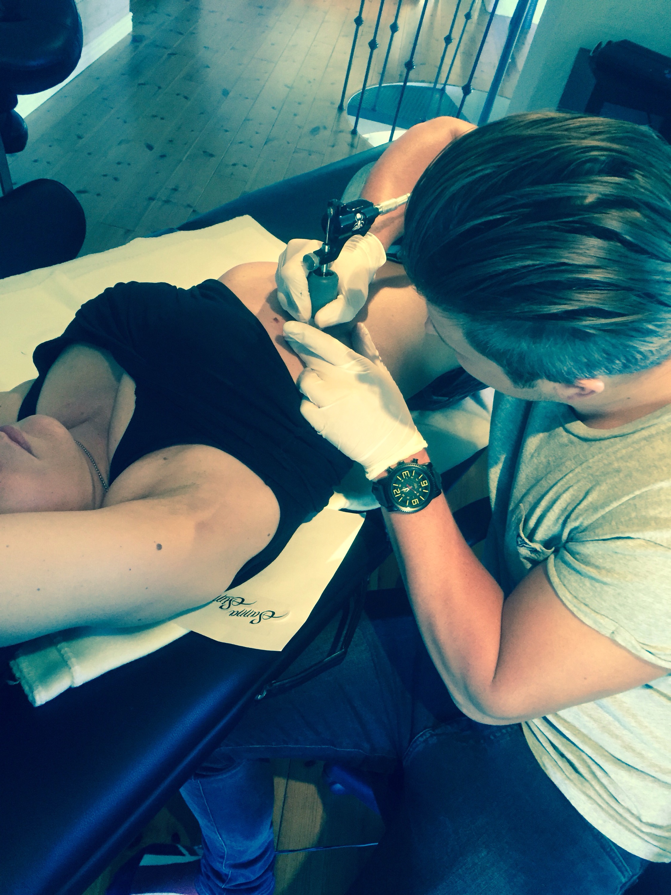 Så var det då dags för min födelsedagspresent! Min tatuering jag skulle få av min Pojkvän. Inte utan att man var lite nervös när vi gav oss iväg på våran roadtrip på ca sex mil enkel resa. Väl framme fick vi kaffe och hade en liten pratstund med killen som skulle tatuera mig. Det var nämligen en släkting till min Vän. Sedan var det bara att sätta igång.