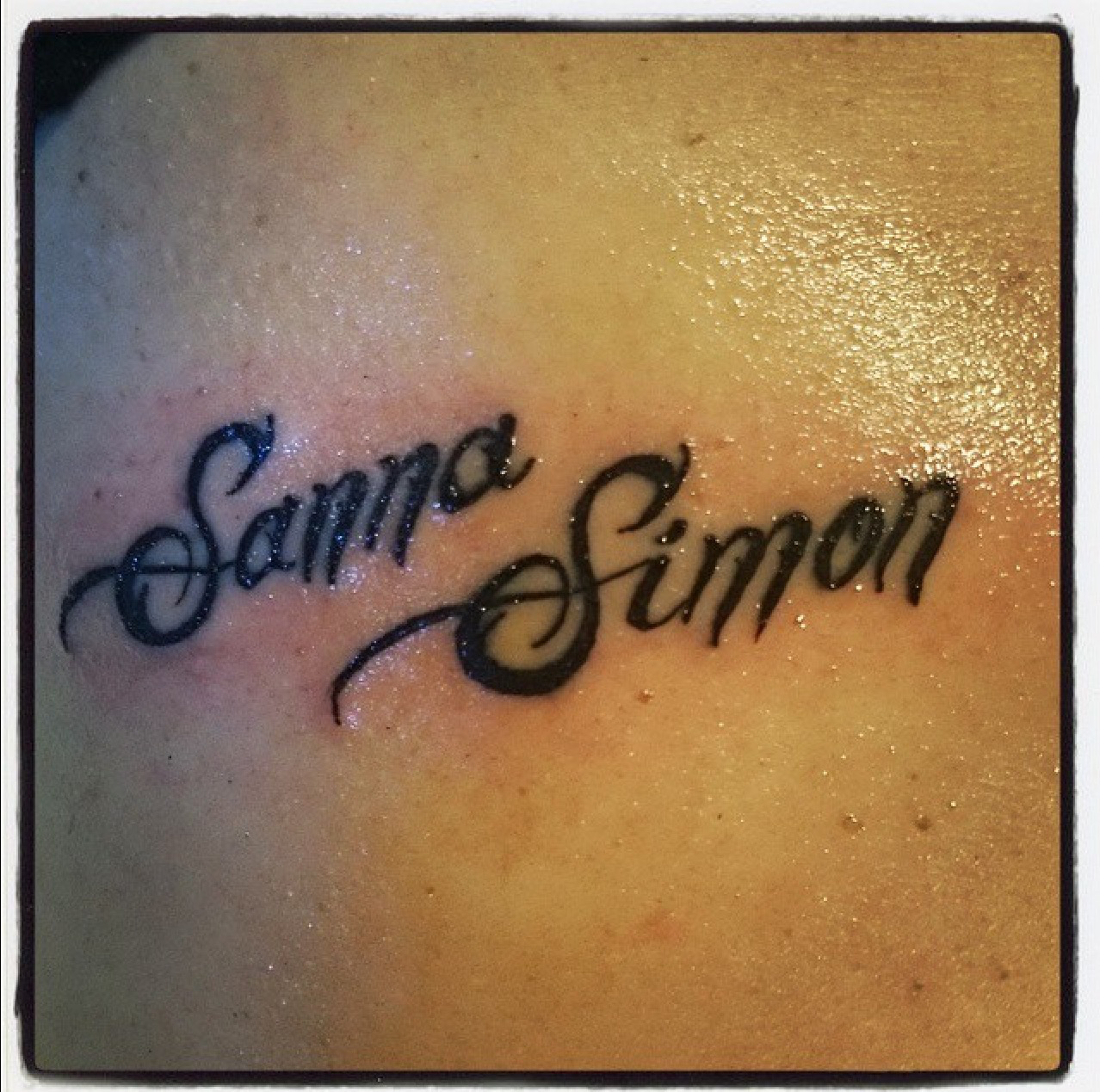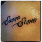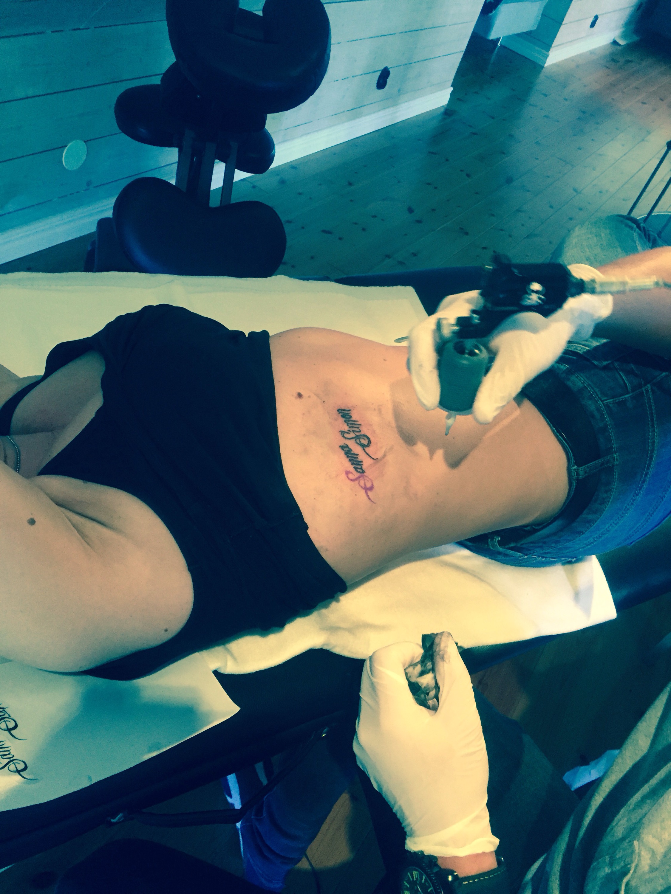 Det blev i alla fall inget armband som jag var inne på först utan det blev barnens namn på sidan av revbenen som ni ser. Och så här blev det färdiga resultatet.