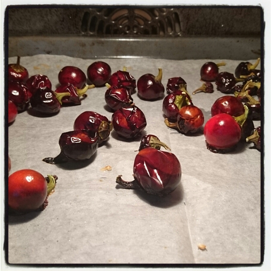 Och nu har jag börjat rosta chilitomaterna och samla frön från tomat och paprika. Har ju som mål att odla nästa år också. Frön från chilitomaten ska jag också ta tillvara på så jag kan odla det också. Sen har jag andra sorters paprika som det ska samlas frön från. De måste bara mogna först. Så måste jag tillverka små påsar att märka upp och förvara fröna i så jaget vad jag har.