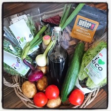 Nog om det. Idag har vi, jag, Dottern och min Vän, varit och grattulerat lilla Pappa som fyllde 78 år. Svårt att komma på något att köpa till så ‘vuxna’ människor som har typ allt de behöver. Men han har börjat intressera sig för matlagning på äldre dar och speciellt sen förra året då Mamma bröt lårbenet. Så det fick bli en korg full med godsaker att grilla och tillaga.