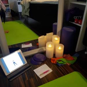 I och med att jag har börjat yoga i stort sett varje dag och ibland flera gånger samma dag har jag iordningställt en yogahörna till mig. Den har jag inrett jämte sängen i sovrummet (där brukar ju sängen i och för sig stå 😉 ) och jag tycker faktiskt att jag fått till den riktigt bra. Här har jag också mina hemmaträningsgrejer som minibands, hantlar, foamroller, triggerboll, spikmatta mm.