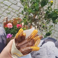 Det skulle säljas både churros och langos på torget i dag. För min del blev det churros.