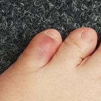 Men det gick bra. Så var det då det här med min läxa, att ut och gå lite varje dag. Har varit lite si och så med det. Men skam den som ger sig. Nu ska jag ta tag i det också. Så jag skulle då ge mig ut men skulle bara på toa innan. Och på vägen ut från toaletten drar jag lilltån i dörrkarmen så det bara sjunger om att. AAAJ SOM F..N rent ut sagt.