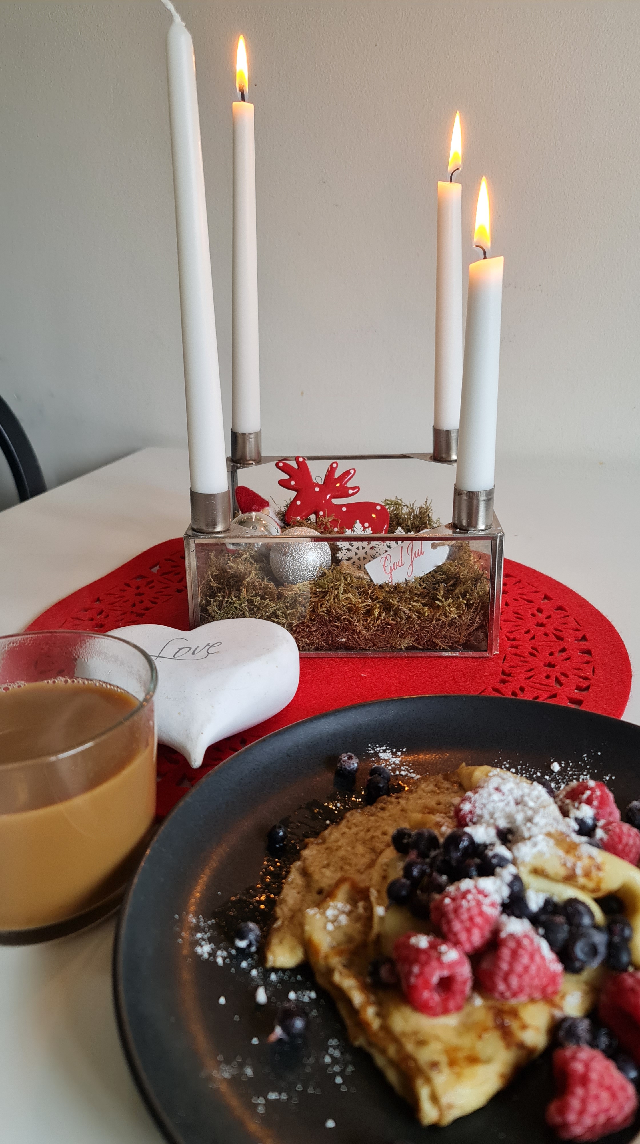 Till vardags och på helgerna försöker jag lyxa till det så gott jag kan. Oftast blir det med något att äta. Kan vara allt från en lite extra god frukost som till exempel pannkakor med färska bär. Eller något extra gott till det där bra tv-programmet eller filmen som jag vill se. Och det kan vara både dagens middag jag förgyller lite med oliver, ost eller annat gott. Kanske en efterrätt bara för att eller bara något annat gott för att jag vill. Och det behöver nödvändigtvis inte vara något onyttigt. Ibland blir det räkor med något gott bröd, ibland en god sallad. Bara det är något jag känner att jag mår bra av. Då tänds det också gärna många ljus för att få till en mysig stämning och ge det ännu en lite lyxigare känsla.