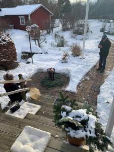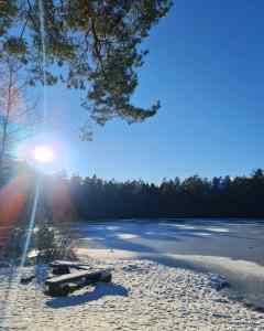 Vädret var tyvärr inte lika soligt idag, om än inte helt igenmulet. Lite synd eftersom Dottern och jag hade bestämt sen tidigare att vi skulle åka ut till mina Föräldrar och leverera deras julklapp. Liiite sent jag vet. Men det har tyvärr inte funkat tidigare på grund av denna förbenade Corona. Jag har bland annat haft symptom, lyckligtvis ingen smitta. Vädret har varit emot oss med regn och snålblåst eller har vi varit upptagna på annat håll. Men nu äntligen blev det av. Och vilken härlig dag (eller timmar) vi fick. Till och med solen tittade fram. Kan ju berätta att de fick en eldkorg med en säck ved i. Hade vi lyckats leverera den när det var tänkt, skulle den även innehålla glögg och annat mumsigt som hör julen till. Nu fick det bli olika sorters korv med bröd samt lite olika tillbehör och dricka. Vi, Dottern och jag, lämnade över presenten för att sen ta en lite promenad. Med fara för både ben- och armbrott kan jag berätta. Det var nämligen blixterhalt. Och det kändes också i bilen när vi körde dit på småvägarna. Men vi tog oss nästan hela den tänkta promenaden fram och tillbaka. Vi fick vända efter ett tag på grund av att vi höll på att halka omkull hela tiden. Det blev cirka två tredjedelar som vi gick. Men så vackert och skönt det var ändå.
