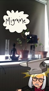 Låg i migrän hela dagen igår. Inte jättekraftig, men fullt tillräcklig för att bli liggandes i sovrummet med nerdragen rullgardin hela dagen. Och givetvis sken solen från klarblå himmel igår. Och jag har det ganska jobbigt med ljuset vid mina migränattacker. Ni som vet hur det är ni vet att det kan vara väldigt jobbigt.
