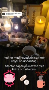 Nästa gång jag vaknade hade värken stillat sig något. Så då steg jag upp och fixade kaffe och tog en tablett till. Sen tog jag mig en lååång stund på mattan med 40 minuters yoga och 30 minuters meditation. Såå skönt med en lugn och stilla start på dagen.