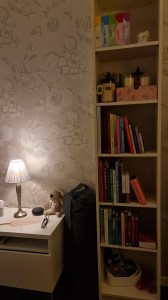 Precis utanför sovrummet har jag också en bokhylla som såg ut ungefär som den i sovrummet. Den tog jag tag i idag och röjde ur. Så där står numera böcker som är jobbrelaterade, till exempel böcker med forskning och fakta om mitt yrke, förskolan och förskollärare. Där finns också några barnböcker och figurer/dockor som jag kan ha användning för i mitt jobb.