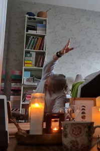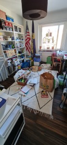 Har länge velat röja i bokhyllan som jag har i sovrummet. Där stod nämligen jobböcker, livsstilsböcker, tidningar, lådor med mera om vart annat. Ingen ordning alls. Och i sovrummet ska det väll förhoppningsvis vara en lugn miljö tänker jag. Så där började jag röja. Tog inga ‘före’-bilder men hittade en där man ser i bakgrunden hur den såg ut innan städning. Jag som gör yoga i förgrunden får ni på köpet. Hihi!