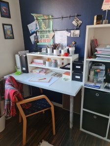Verkar som jag har det lite kaosigt överallt just nu. Och så är det nog. Men jag jobbar på att styra upp alla mina prylar som jag har. I pysselrumskaoset har jag idag i alla fall röjt fram mitt skrivbord så jag kommer åt det. Alltid något.