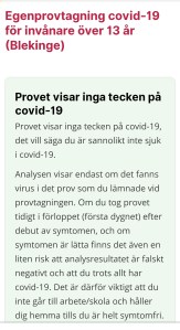 Har testat mig tre gånger på en vecka p.g.a. smittspårning och symptom. Varit negativ varje gång. Något gott med detta är att istället för att sitta i personalrummet, som vi inte har fått gå till, har jag varit ute och gått på min lunchrast. Det har ju blivit nästan en halvtimmes promenad om dagen. Och vi har ju så vackert område att promenera i så det har inte gjort ont någonstans faktiskt. Så har vi mestadels haft tur med vädret också så det har varit riktigt skönt med dessa lunchpromenader.
