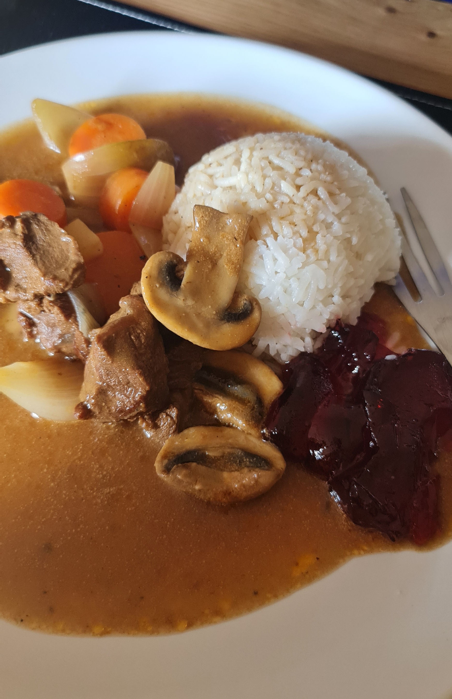 Efter några timmar hos Mor och Far åkte sedan Dottern och jag hem till Sonen med Sambo för att äta middag. Det blev köttgryta på dovhjort med ris till. Sååå gott! Sonen har lite som intresse att laga mat och han är väldigt duktig på det också.