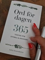 Så även idag, och jag har nu några dagar på rad skrivit att jag borde ta mig ut och promenera. Och att jag också vill leta svamp… Till saken hör att på den rundan jag brukar gå finns det ställen där det ibland växer svamp. Inte alla år, men ibland. Ganska tydligt vad jag skulle vilja göra, men inte fått tummarna ur… eller hur? Efter att jag har skrivit dagbok brukar jag numera även läsa i en bok som heter ‘Ord för dagen- 365 texter för styrka och sinnesro‘. Har ganska nyligen köpt den och den är såå fin.