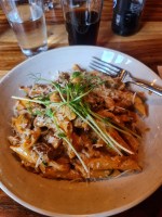 Efter kalaset, lite senare på eftermiddagen, när vi körde hem Dottern och jag kände vi oss hungriga. Och ingen av oss hade lust att laga någon mat. Så vi gick helt enkelt ut och åt på ett mysigt ställe här i stan. Och så gott det var! Både Dottern och jag beställde pasta. Hon med gorgonzola och fläskfilé och jag med oxfilé i cognacssås. Mums säger jag bara!