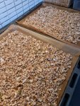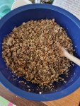 - Blanda allt utom russin i en stor skål. Bred ut på två plåtar och rosta i ugn 20-30 minuter i 175⁰. Rör om emellanåt.