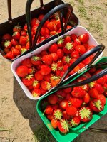 Igår var jag och SysterYster iväg på självplockning av jordgubbar. Äntligen skulle jag vilja tillägga. Har försökt komma iväg på detta flera somrar men det har inte velat sig riktigt. Antingen har jag sett annonser som varit för sent eller har jag sett dom och sedan glömt bort eller har det varit fullbokat. (Ja, vissa ställen har bokning av plats.) Men igår så blev det alltså äntligen av.