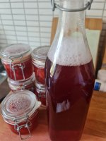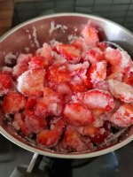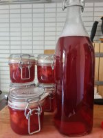 Två av burkarna gav jag bort. En till Dottern och en till Svärdottern. Så jag hoppas den blev god. Jag har nämligen inte provsmakat själv ännu. Jag hade också en stor bunke med jordgubbar med mig igår kväll när vi träffades. Det var jag, Dottern, Svärdottern, Sonen plus en kusin till barnen som träffades för fredagshäng. Och givetvis mitt älskade lilla Barnbarn.