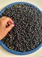 Men blåbären ska jag behålla och frysa in som dom är. Gott att ha i yoggin eller i smoothies senare. Kanske att jag ska försöka torka en del för att ha i min granola. Har inte riktigt bestämt än. Men om jag gör så lovar jag att berätta hur det blev.