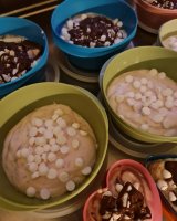 Jordgubbar blev det inga över. Det blev saft, sylt och glass av dom. Sonen med Flickvän ville ha en flaska saft också och klart att dom skulle få det. De sista gubbarna gjorde jag glass av och den blev så god. Hälften blev med jordgubbssås och bitar av jordgubbar och hälften blev med jordgubbssås och Nutella. Mums vad gott det blev!