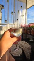 Och nu startade del 2 av min semester. Har ju haft en vecka ledigt, gått in och jobbat en vecka och nu har jag tre veckors ledigt kvar. Detta firade jag in med lite gott att äta och med lite bubbel i kvällssolen på balkongen. Härligt. Fick nu anledning att inviga mina nya champagneglas som jag vann i vinstvalet häromveckan. Och dom var såå goda att dricka ur. Tunna, höga och smala.