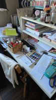Så igår tog jag mig lite ork att röja undan på mitt skrivbord som blivit överbelamrat med diverse papper och grejer. Tänk så snabbt det fylls på av massa onödigt skräp. Men det ska bli bättring på det. Vill ju ha min plats att måla på.