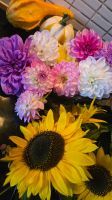 Efter jobbet blev det en tur till ‘mitt’ själplock-ställe. Där jag har plockat blommor, mest dahlior, typ hela sommaren. Så underbart ställe som har både självplock av flera olika sorters blommor, försäljning av egenproducerade ägg och egenodlade, ekologiska grönsaker. Och så mysigt att vistas på. Idag blev det då en tur dit för, fick jag veta av ägaren, årets sista helg för självplock. Så det blev både några dahlior, solrosor, lite mangold och svartkål samt några pumpor. Så både dra ut på sommaren och lite välkomna hösten.