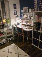Även min rit- & pysselhörna fick bli lite ompysslad. Så nu är det lite trevligare att sitta där och måla igen. Hela det rummet behöver röjas och rensas. Och lite har jag faktiskt börjat med idag. Det blev till och med så pass uppröjt att min robotdammsugare fick läsa in och dammsuga där. Det har den inte fått (läs kunnat) göra innan på grund av för mycket grejer.