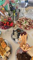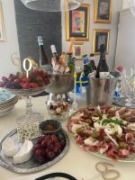 Uppvaktningen började som förfest med bubbel och tilltugg hemma hos ena kollegan. Så mysigt och trevligt ordnat.